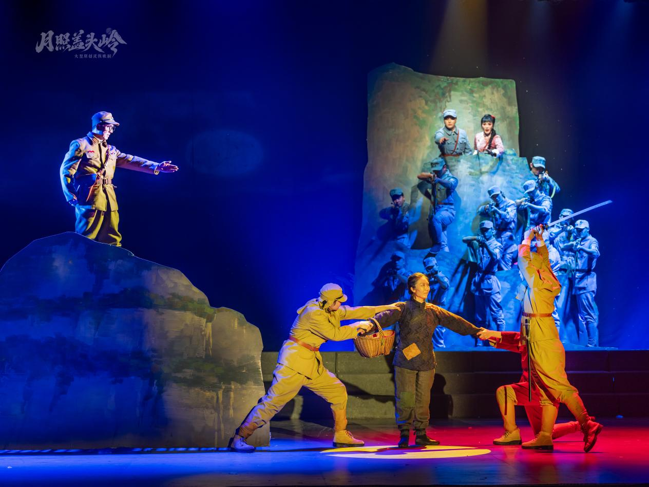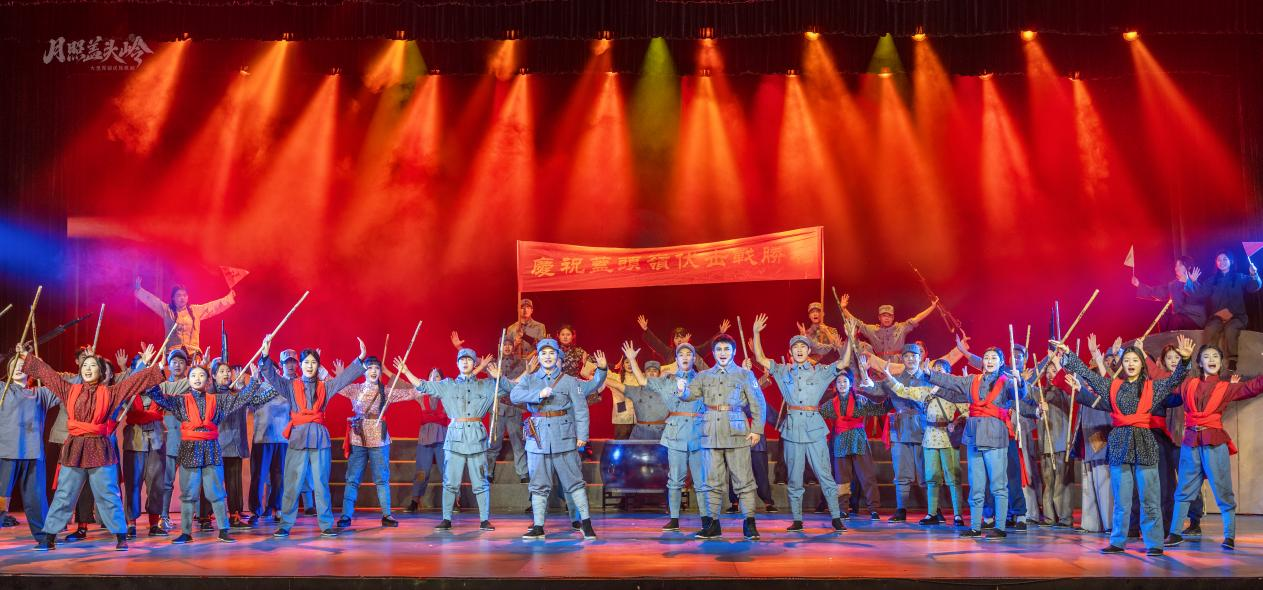 《月照蓋頭嶺》的創(chuàng)作深植歷史土壤,兼具時(shí)代意義與紀(jì)念價(jià)值,恰逢一二·九運(yùn)動(dòng)90周年,其演出更成為河南文藝界紀(jì)念這一重要?dú)v史節(jié)點(diǎn)的關(guān)鍵實(shí)踐。劇中以豫北南太行抗日根據(jù)地的英雄事跡為藍(lán)本,通過藝術(shù)化的敘事,還原抗戰(zhàn)時(shí)期河南兒女挺身而出、保家衛(wèi)國的英勇場景,讓紅色基因在舞臺(tái)上得以鮮活傳承,也讓觀眾透過藝術(shù)光影觸摸歷史溫度,厚植愛國主義情懷。