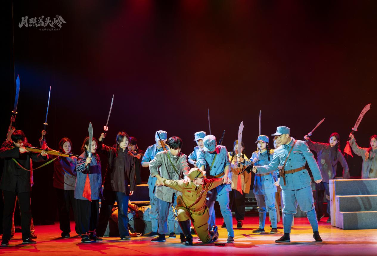 (記者 劉蕊 河南報(bào)道)炮火聲中,一襲紅蓋頭自舞臺(tái)上空劃出壯烈弧線,如火焰般照亮南太行的夜空——這震撼人心的一幕,源自鄭州西亞斯學(xué)院原創(chuàng)民族歌劇《月照蓋頭嶺》的演出現(xiàn)場。日前這部獲國家文旅部重點(diǎn)扶持的紅色劇目在該校歌劇院教學(xué)劇場首演,以歌劇藝術(shù)之筆,重繪豫北抗日根據(jù)地的英雄史詩,讓香港及內(nèi)地觀眾透過舞臺(tái)光影,觸摸民族危亡之際的家國情懷。
