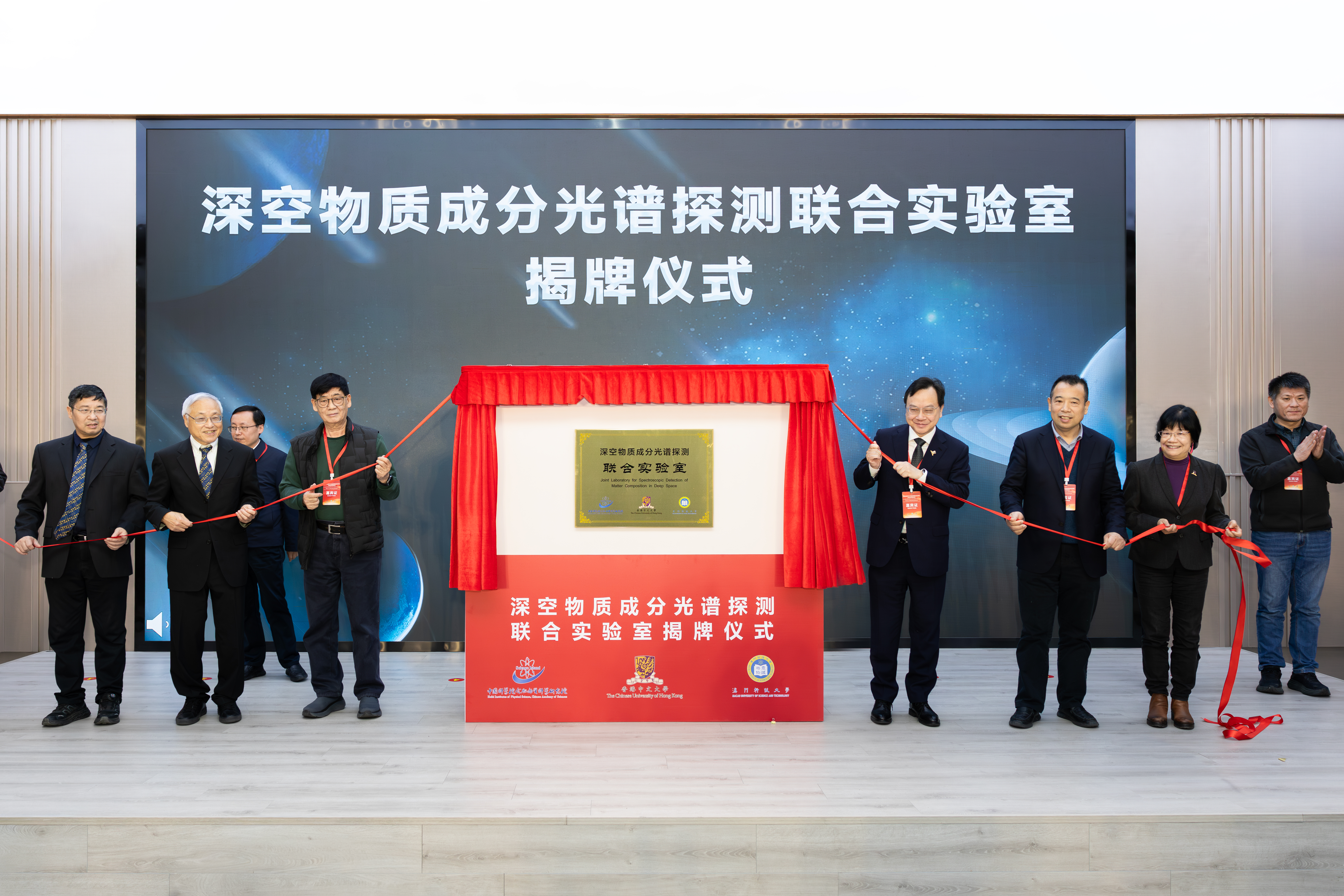 中大校長(zhǎng)、中國(guó)科學(xué)院院士盧煜明教授,與安徽省合肥市委常委、市人民政府副市長(zhǎng)袁飛副市長(zhǎng);安徽省科技廳黨組成員譚海斌副廳長(zhǎng);合肥物質(zhì)院劉文清院士和劉建國(guó)院長(zhǎng);澳科大譚廣亨副校長(zhǎng)以及中科院重大科技任務(wù)局光電空天處李自傑處長(zhǎng)出席活動(dòng),共同見(jiàn)證合作協(xié)議的簽署,並一同為聯(lián)合實(shí)驗(yàn)室成立典禮暨天問(wèn)三號(hào)載荷項(xiàng)目啟動(dòng)儀式主禮。聯(lián)合實(shí)驗(yàn)室是由三方合作共建,旨在打造高端科研平臺(tái),融合內(nèi)地大科學(xué)裝置與工程研製方面的優(yōu)勢(shì)、香港在精密光譜與人工智能領(lǐng)域的專長(zhǎng),以及澳門(mén)在航天科技與行星科學(xué)領(lǐng)域的特色平臺(tái)研究能力,共同服務(wù)於國(guó)家深空探測(cè)戰(zhàn)略需求。