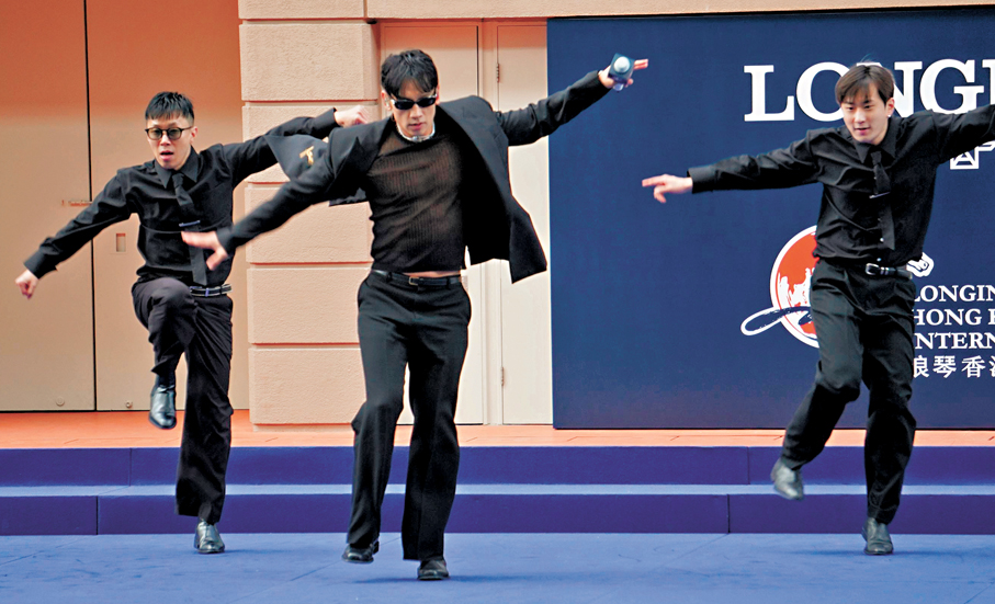 香港文匯報(bào)訊(記者 子棠)憑電影《封神第一部:朝歌風(fēng)雲(yún)》人氣急升的內(nèi)地演員于適、香港新生代人氣王魏浚笙(Jeffrey)、馬來西亞華裔演員林宣妤、泰國(guó)國(guó)民偶像Mario Maurer,以及韓國(guó)天王鄭智薰(Rain)昨日齊聚一堂,現(xiàn)身沙田馬場(chǎng)舉行的《浪琴香港國(guó)際賽事》。其中,Rain連續(xù)跳唱多首歌曲,更走到臺(tái)下繞場(chǎng)親切的與觀眾握手,令全場(chǎng)氣氛高漲;而眾星在訪問中亦分享策騎奔馳的體驗(yàn)及對(duì)香港的熱愛。Rain與Mario主動(dòng)用粵語(yǔ)打招呼冧粉,兩人均表示希望與「浩南哥」鄭伊健合作。