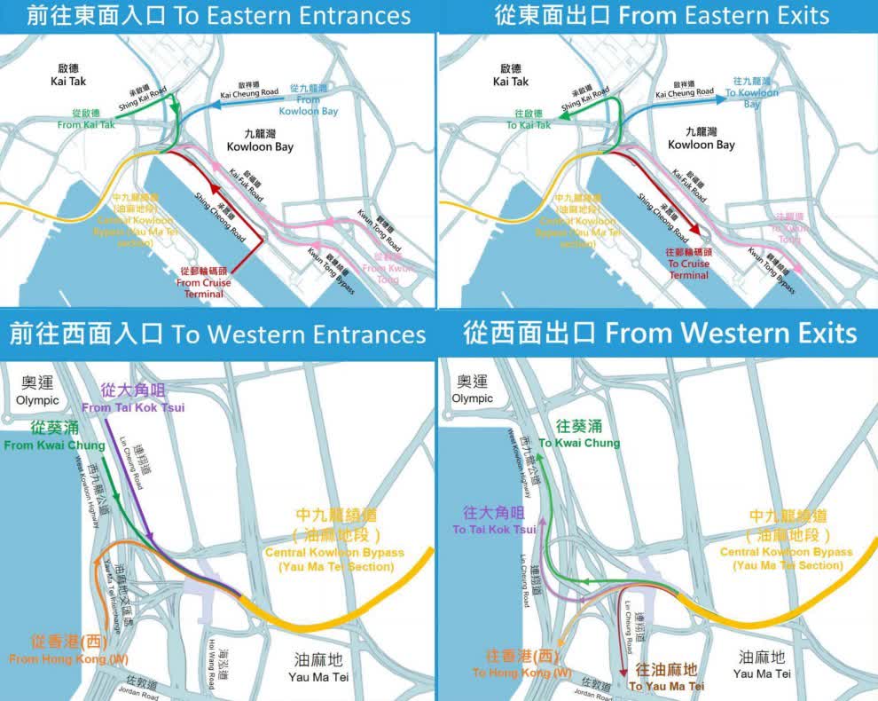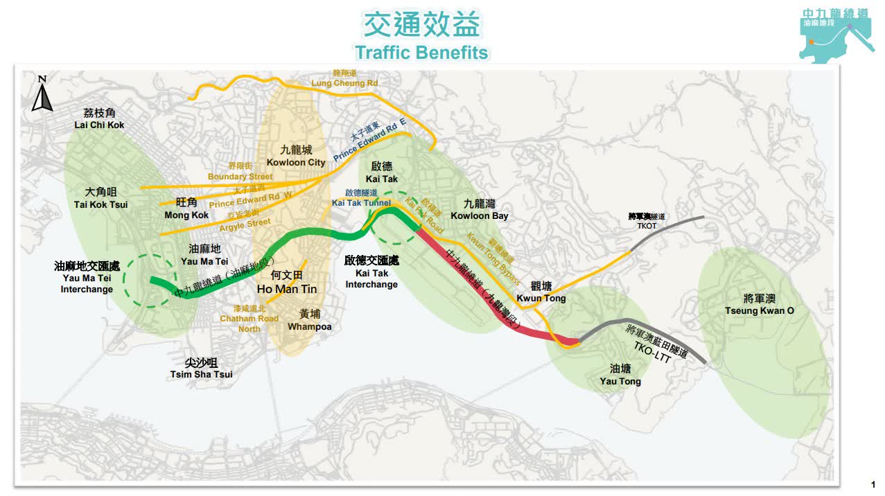 路政署聯(lián)同運(yùn)輸署及警務(wù)處,今日(16日)在中九龍繞道(油麻地段)行政大樓舉行簡(jiǎn)報(bào)會(huì),講述通車的具體安排。運(yùn)輸署表示,中九龍繞道(油麻地段)連接西九龍的油麻地交匯處與東九龍的啟德交匯處,油麻地設(shè)有7個(gè)出入口,駕駛?cè)耸靠山?jīng)海寶路、西九龍公路及連翔道來(lái)往尖沙咀、西區(qū)海底隧道、大角咀或葵涌;啟德則設(shè)有8個(gè)出入口,讓駕駛者經(jīng)承啟道、啟祥道及啟福道往返啟德、九龍灣、啟德郵輪碼頭或觀塘。繞道開通後,將能分流九龍現(xiàn)有東西行主要幹道的車流,紓緩繁忙時(shí)間的交通擠塞。
